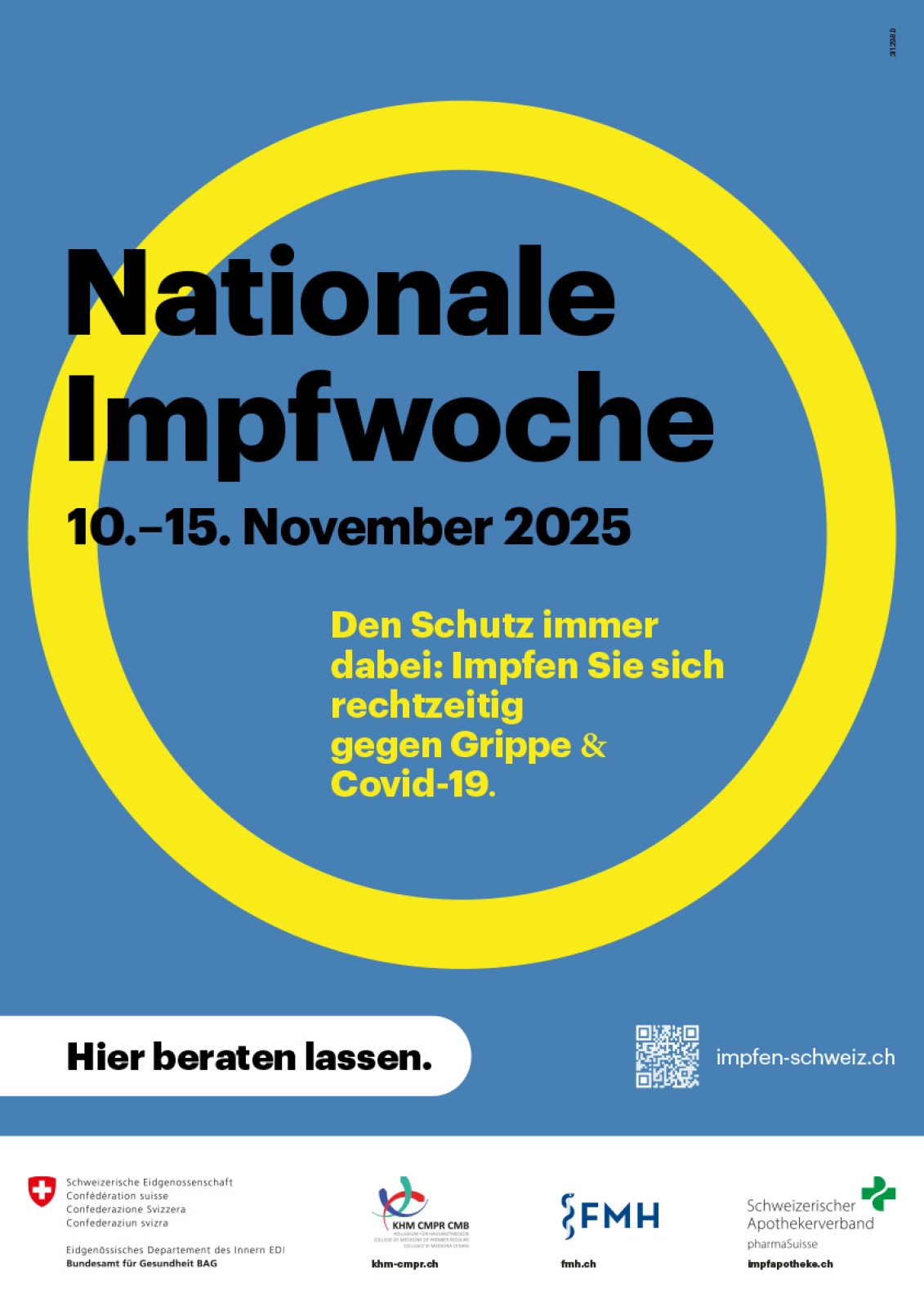 Von Montag 10.10.25 bis Samstag 25.10.25 findet erstmals die Nationale Impfwoche statt. Profitieren sie in diesem Zeitraum von unserem Angebotspreis von 35 CHF für die Impfung gegen die saisonale Grippe. Ausserhalb der Nationalen Impfwoche beträgt der Preis 44.20 CHF.